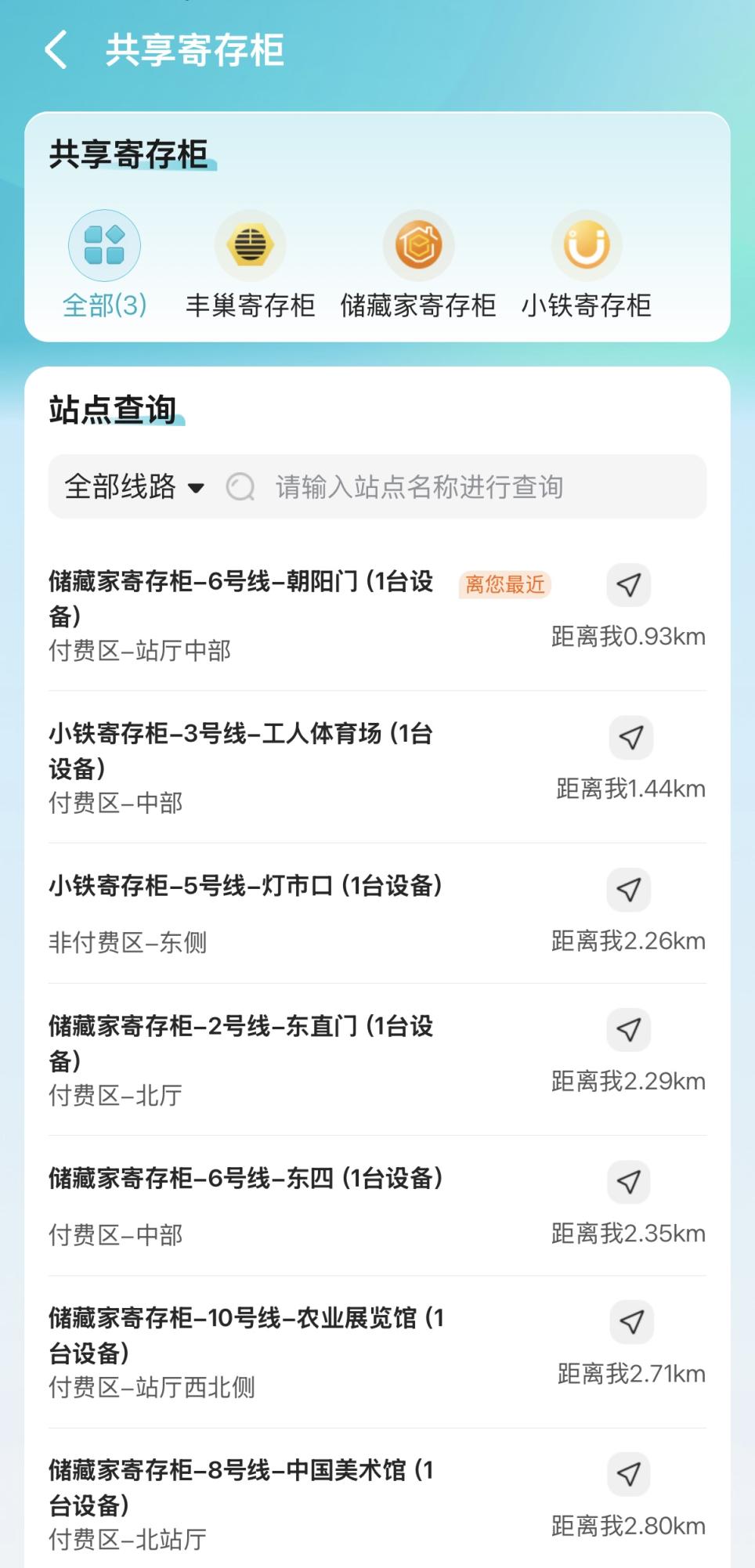 升级后的北京地铁App,在首页及乘车页显著位置增设“便民服务”功能与“地铁便民”模块。乘客可以轻松查询到全市各地铁站内便利店、智能售货柜、便民领水点、共享寄存柜、充电设施等各类便民设施的具体位置,按需查找服务更便捷。